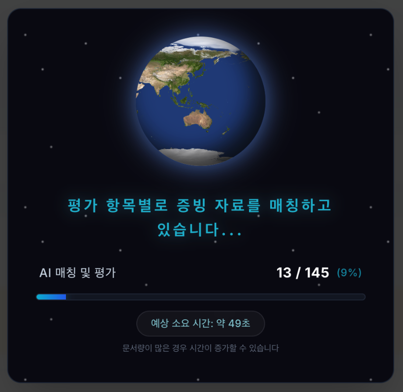 수백 개의 증빙 자료를 올리면, AI가 각 항목에 가장 적합한 증빙을 자동으로 매칭합니다. 수작업 문서화에 드는 시간을 90% 이상 획기적으로 줄여줍니다.